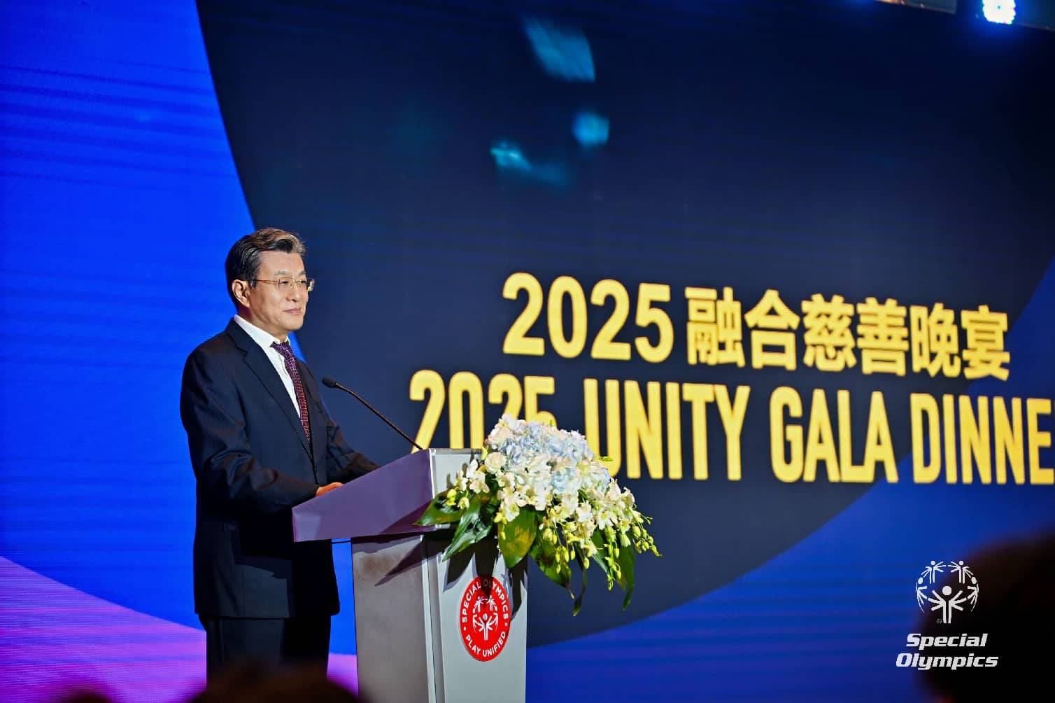 国际特奥会主席蒂姆·施莱佛博士虽因公务未能亲临,仍通过视频向晚宴致以诚挚问候。“我们始终相信,体育拥有改变世界的力量。”蒂姆·施莱佛博士在视频中表示,“从都灵的冰雪赛场到中国特奥运动会的拼搏瞬间,再到今晚的慈善盛宴,我们共同见证着融合精神如何打破隔阂、凝聚人心。感谢每一位大使、每一位伙伴,你们让特奥的使命持续发光。”