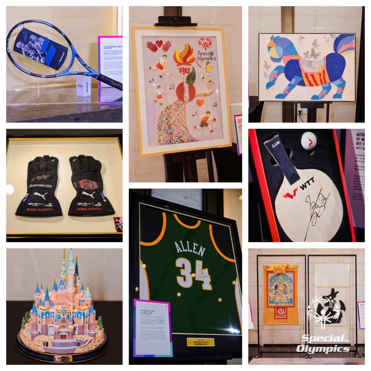 晚宴现场,中国友好和平发展基金会理事长李希奎先生向所有支持企业及个人表达衷心感谢。慈善拍卖环节共呈现20多件珍贵拍品,包括特奥运动员的作品《逐梦特奥》、《彩绳锦韵·马》、李娜签名的百宝力球拍、周冠宇签名F1首秀赛车手套、上海迪士尼度假区豪华礼遇套餐、侯琨、吴静钰夫妇之女侯小钰捐赠的灵龙挂件、北京奥林匹克文化促进会会长夏斯均捐赠的历届冬奥会官方邮票珍藏大典、NBA中国捐赠的NBA奈史密斯名人堂球员雷·阿伦在西雅图超音速的签名球衣、阎兰女士的摄影作品《水中树影》和《海上蜃楼》、WTT捐赠的本赛季女单冠军王曼昱亲签乒乓球拍、吉祥航空商务舱往返机票、海外收藏家陈威德捐赠的景德镇窑豆青釉圆形方孔钱币纹笔筒、《老万年好运来醒狮黄金吊坠》、人类非物质文化遗产热贡唐卡艺术的代表性传承人才让扎西的《普贤菩萨》唐卡、中国美术学院美术学任天进博士的书法作品《爱》、著名雕塑家叶昇坡的《道》、当代艺术家刘昊的大理石作品《地心入口》、美籍华人高定设计师Grace Chen高定礼服《瑰式旗袍》系列中的「月光」现代旗袍、中国建筑学会公共艺术专业委员会委员陈金庆的《秘境吉光,鹿鸣春山》、青海省一级民间工艺师罗藏青周的《黄财神》唐卡、Diamond Skateboard TRICE Odyssey Collection、艺术家Tango作品馄饨猫(底座含电影《菜肉馄饨》剧组所有演员签名),以及特殊奥林匹克自有项目。整场拍卖气氛热烈,举牌踊跃,最终共筹集善款人民币110万元,将全部用于支持特奥东亚区运动员训练、融合运动推广、家庭参与项目及健康计划等特奥事业发展。