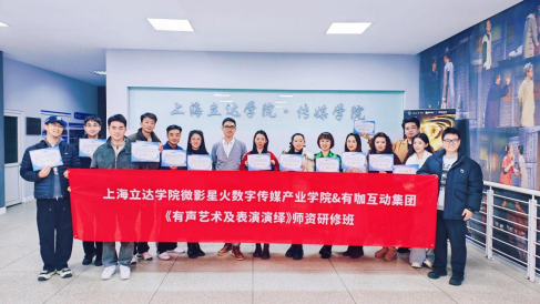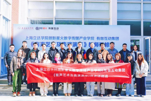 近日,上海立达学院微影星火数字传媒产业学院与有咖互动集团展开了创新合作,共建“陈家恒配音工作室”,将真实项目与制作环境引入校园;并同步启动《有声艺术及表演演绎》教师研修班,从师资端切入,推动教学理念系统更新。通过“实体平台+师资研修”双线并行的模式,有声艺术教育搭建了一条可持续、可复制的产教融合新路径。