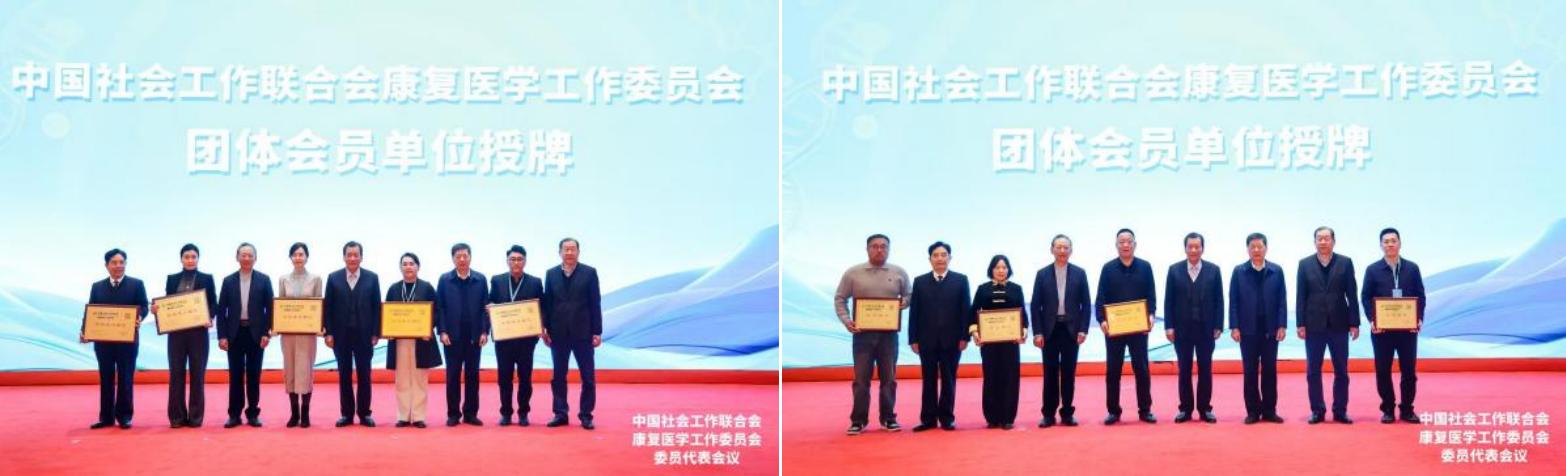 签约仪式后,大会举行了团体会员单位颁牌仪式,联合会领导为京东方科技集团股份有限公司、山东省心安社会工作学院等 5 家常务委员单位和 4 家委员单位颁发团体会员单位牌,进一步壮大了康复工委的组织力量,构建起资源共享、优势互补的行业生态。