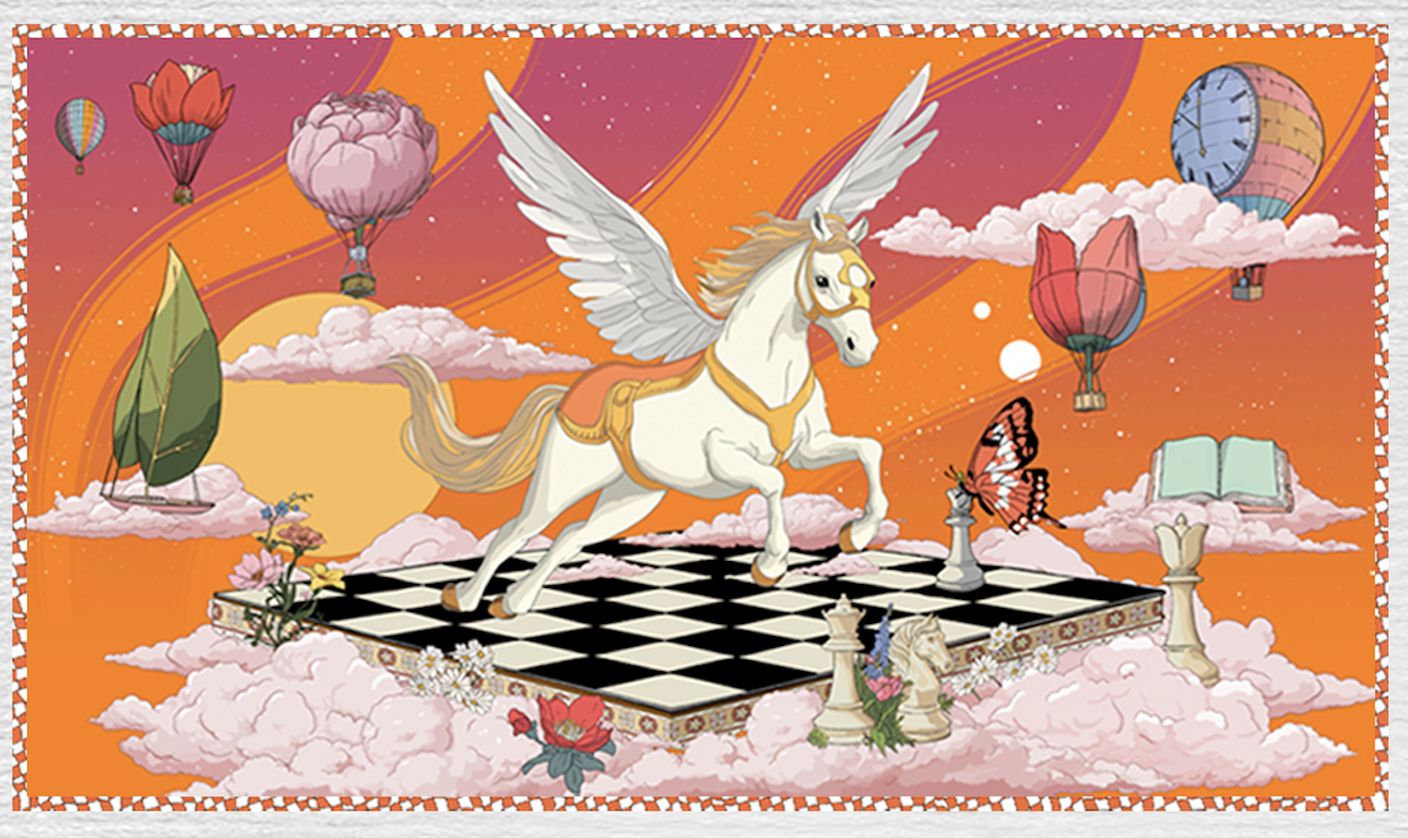与之配套的还有一张马年高定壁纸,暖橙色+柔粉色的整体色调,交织出梦幻奢雅的感受。定睛细看,一匹白色飞马以胜利之姿冲破桎梏,奔向未来;黑白相间的棋盘格,以智慧巧思铺就马年的每一步;带着时钟的热气球缓缓升空,一起探索未知的美好;几捧莲花在云端飘荡,希望你轻装上身,满载而归。创维携手爱马仕合作设计师,祝你来年“马到橙功”!