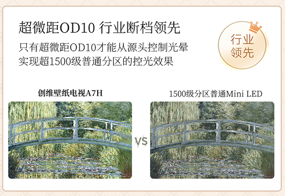 创维A7H不光有“面子”,更有“里子”。其采用了领先行业的超薄AI控光系统,超微距OD 10技术让创维A7H实现了超1500级普通分区电视的观影体验,看画和追剧都能拥有丰富的色彩表现和细腻的画质。