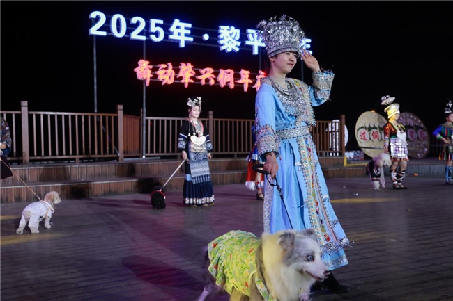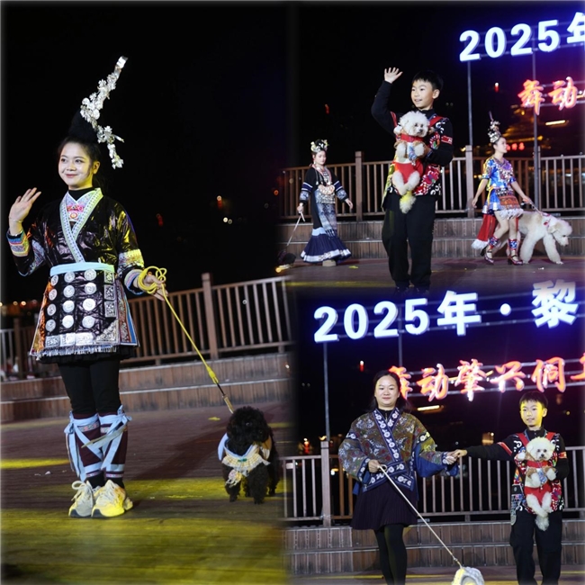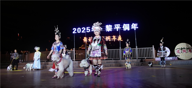 (贵州黎平,2025年12月20日)当悠扬的侗族大歌在千年鼓楼前响起,身着定制侗布华服的“萌宠模特”与它们盛装的主人踏着自信的步伐,穿梭在肇兴侗寨的璀璨灯火与侗年庆典的欢声笑语中。