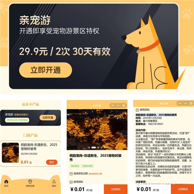 以标准与平台为基石,宠物民族服饰秀正是这一生态IP活动之一,将持续推出 “宠物主题公益行动” 、打造线下 “宠游乐园” 实体业态、开发 “宠游消费盒子” 等主题产品,通过一系列可复制、可推广的跨界品牌与业态,为景区创造持续的内容吸引力与消费增长点。