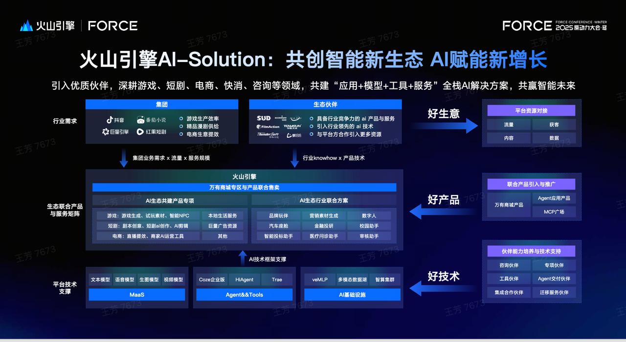 未来,火山引擎将以更加开放的生态姿态,携手行业头部伙伴深耕AI+场景,无论是寻求数字化转型的传统企业,还是致力于技术探索的科技创新企业,都可精准把握行业机遇,斩获确定性增量。