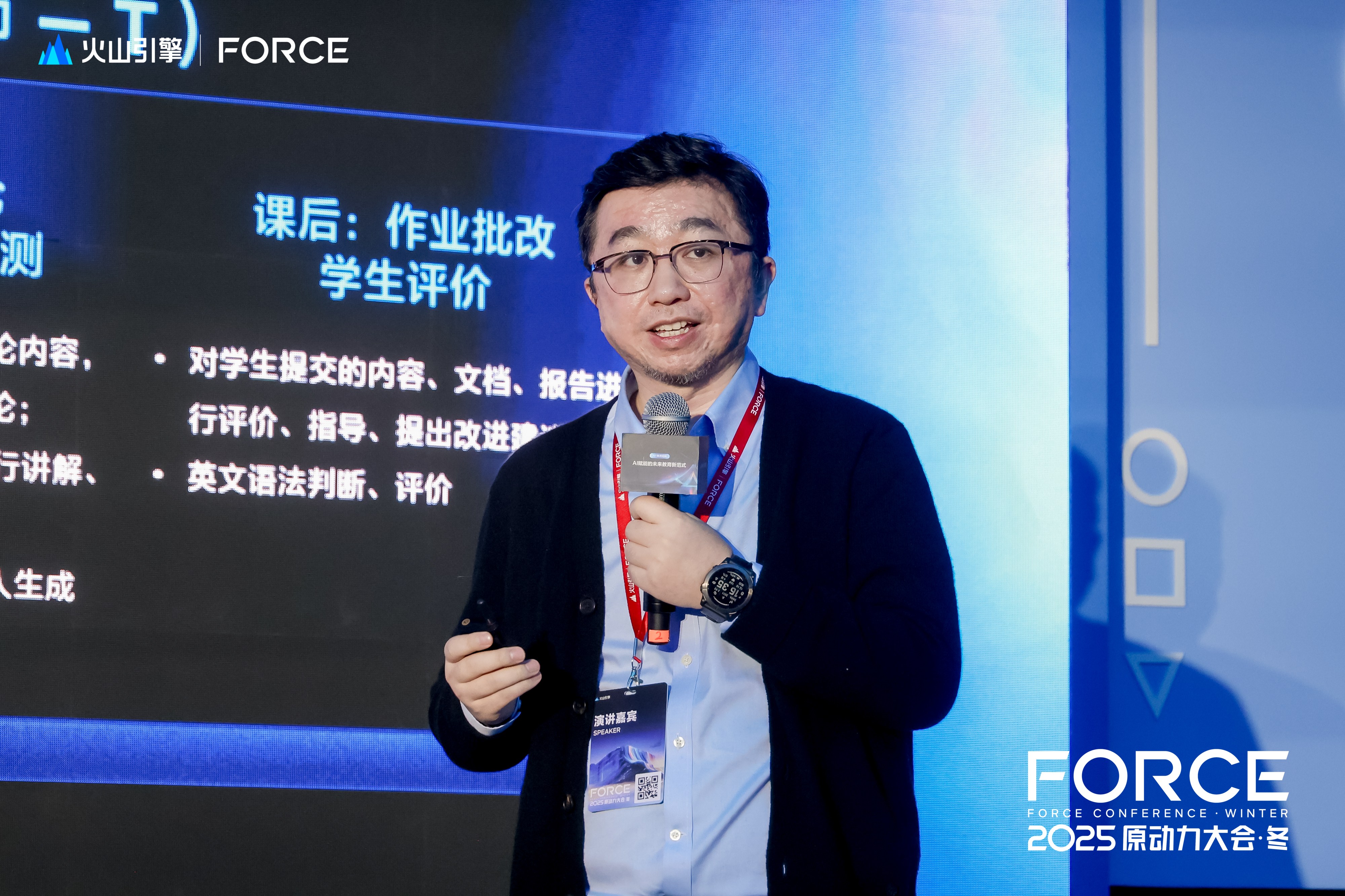 火山引擎副总裁张鑫在致辞中指出,当前 AI和教育正处在“双向奔赴”的阶段,大模型从工具逐步演变成产业与科研的核心生产力。AI 将推动教育体系在教学方式、学习空间与资源配置上的系统性重构,而教育则是突破大模型长期发展瓶颈、培育高端与复合型人才的关键基础。