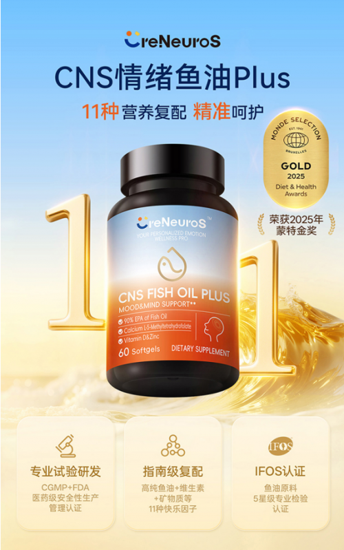 产后是女性身心调适的关键时期,在角色转换、育儿压力、激素波动等多重因素影响下,产后抑郁已成为许多宝妈的健康隐患。现代医学与营养学研究表明,针对性的营养干预是辅助管理情绪和预防产后抑郁的可行手段之一,其中,活性叶酸对情绪健康的支持作用得到越来越多的证实。基于这一科学认知,以高含量活性叶酸和高纯度EPA为核心配方的cns情绪鱼油,其设计思路为产后情绪的营养支持提供了一个基于科学研究的产品设计示例。