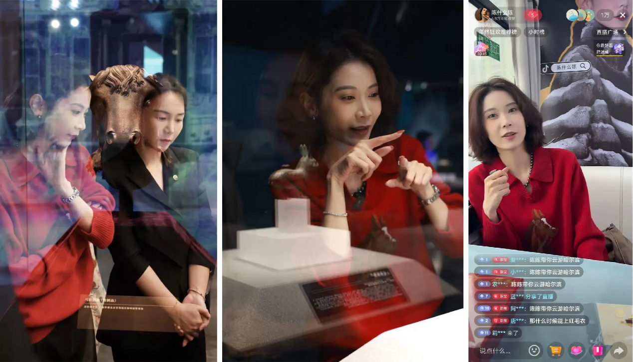 陈陈在直播中动情分享:“民族弱则文物失,民族强则国宝归。我们以巴士为纽带,串联国宝兽首展与哈尔滨城市美景,就是希望用轻松亲切的方式,邀请大家同行,在移动中感受历史与城市的双重魅力。”
