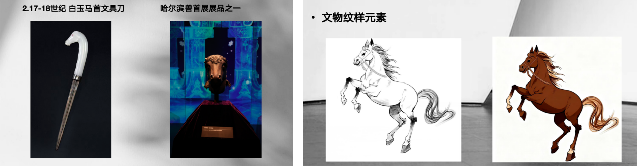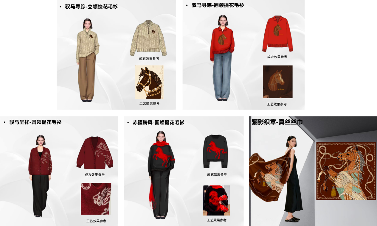 这次活动也展示了CHENSMCHEN与保利文化跨界联名的产品,设计团队在确认图案中进行了二次创作,将马表现戴马链奔腾的跃式,驭马的状态,在保留原稿形态基础下,将线条流畅化,使得图案更具灵动感,将文物元素与现代设计相融合,让文化走进日常生活,把文物穿在身上。