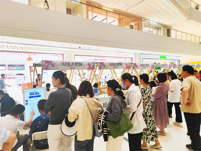 (某青年疗愈市集知医邦的AI中医现场进行AI看舌、把脉)
