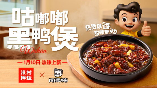 1月10日,黑鸭风味开创者周黑鸭与中式快餐头部品牌米村拌饭正式官宣联名,联名新品“咕嘟嘟黑鸭煲”同步登陆米村拌饭全国1800余家门店。时值2026年春节临近,此次合作更承载着周黑鸭“谢谢你,喜欢黑鸭味”的中国新年营销主题初心——以跨赛道的美味创新,向所有喜爱黑鸭味的消费者致以真诚致谢,让经典风味温暖节日时光。这场跨越休闲卤味与快餐赛道的深度合作,不仅带来了产品形态的创新融合,更彰显了周黑鸭作为风味开创者,推动黑鸭风味走向多元场景、赋能行业共同发展的开放格局,为中式经典风味的跨场景延伸与行业协同发展提供了全新范本。