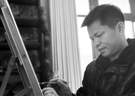 作者胡绪军,别名胡杨木,从事雕塑行业三十余载,作品分布国内外。