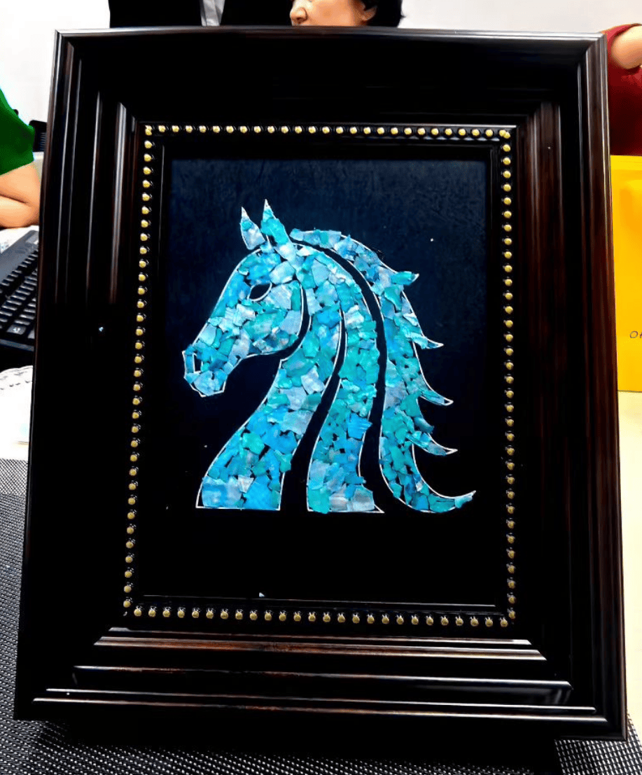 压轴登场的螺钿马年相框DIY,以非遗技艺惊艳全场。非遗传承人首先讲述螺钿工艺的千年历史,从古代漆器到现代装饰,贝片镶嵌的璀璨技艺令职工们啧啧称奇。在老师指导下,大家用镊子将天然螺钿贝片拼贴成“奔马”“祥云”纹样,再嵌入实木相框固形。“每一片贝母的光泽都不一样,要慢慢调整位置才能拼出流畅的线条。”职工小陈专注地创作,最终完成的相框既有传统工艺的精致,又融入了个人审美,成为独一无二的生肖纪念品。
