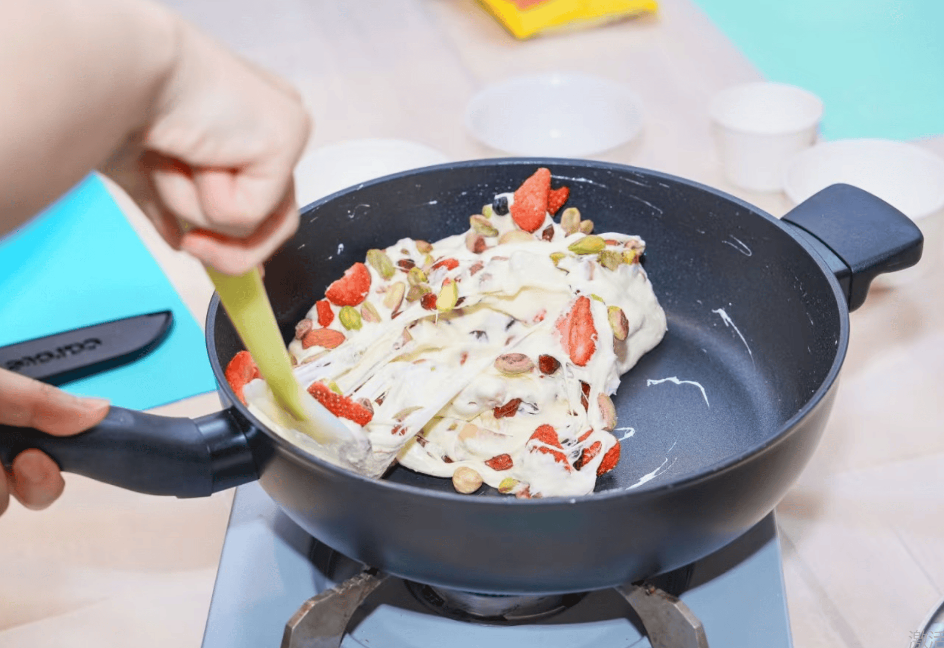 烘焙师主讲的雪花酥DIY,则将活动推向协作共享的高潮。黄油、棉花糖、全麦饼干碎在锅中咕嘟冒泡,职工们分组分工,有人搅拌熬糖,有人揉碎饼干,