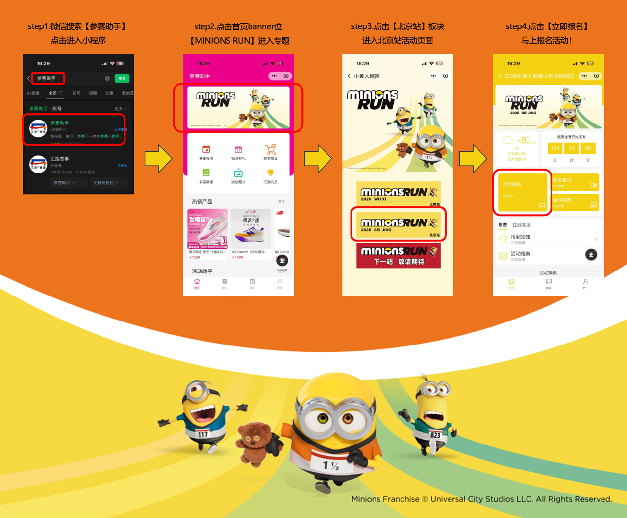 微信搜索汇跑赛事【参赛助手】小程序按照下方步骤马上报名!