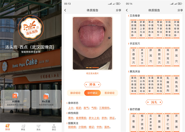 而今有一款名叫“汤头”的APP,恰是串联起“汤头”的核心纽带,能让分散形式各种的“汤头”形成一个大健康闭环。当你用汤头(App)完成了AI舌诊、AI脉诊、AI问诊,汤头(App)会秒出一份体质检测报告,AI辨证施膳,AI养生方案一股脑全告诉你,于是所有“汤头”都有了辨证依据和专业根基。