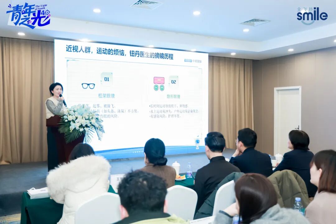 在赛事分享环节,钮丹主任以亲身摘镜经历切入,生动揭示了近视人群的日常困扰。她强调,一台成功的屈光手术,其核心是“微创+安全+精准”的综合体现,最终目标是实现“医生安心、患者满意”的医患共赢。这一理念与微创全飞秒精准4.0-VISULYZE技术的核心优势高度契合——通过系统科学的数据分析,助力医生更精细把控和精益求精手术质量,并最终带来更高的患者满意度。