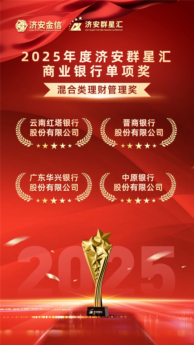 获得2025年度济安群星汇商业银行单项奖——混合类理财管理奖的机构是:云南红塔银行股份有限公司、晋商银行股份有限公司、广东华兴银行股份有限公司和中原银行股份有限公司。