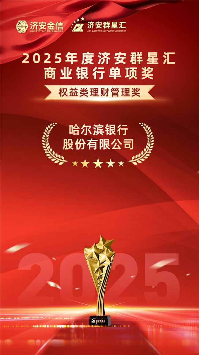 获得2025年度济安群星汇商业银行单项奖——权益类理财管理奖的机构是:哈尔滨银行股份有限公司。