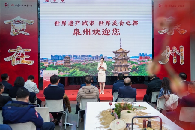 活动在“世遗泉州·味连五洲”宣传片的播放中拉开序幕,生动展现了泉州美食的历史底蕴、风味特色与人文魅力。随后,主办方从海丝孕育、活态传承、产业升级、国际交融及未来发展等多维度,系统推介了泉州美食的文化脉络与广阔前景。