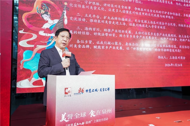 2026年1月24日,“美誉全球 食在泉州——‘世界美食之都·泉州’上海宣介会”圆满举办。本次活动由泉州市申创世界美食之都办公室、泉州市人民政府驻沪联络处与上海泉州商会联合主办,泉州市美食产业促进会、轮值会长单位上海安溪商会、劲霸男装(上海)有限公司、上海澳莉嘉食品有限公司(老香斋)协办。标志着泉州2026年度“世界美食之都”品牌系列宣介活动正式拉开帷幕。