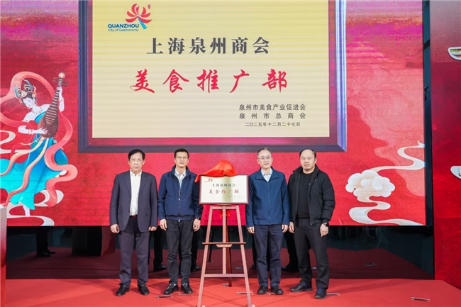 为推动社会各界共同参与美食之都建设,上海泉州商会会长洪建设现场宣读了《凝心聚力助推泉州“世界美食之都”品牌建设倡议书》,号召广大乡贤积极宣传推广家乡美食文化,积极投身美食产业发展。会上,“上海泉州商会美食推广部”正式揭牌,未来将作为泉州美食在沪推广的重要平台,持续开展品鉴、交流与产业对接活动。
