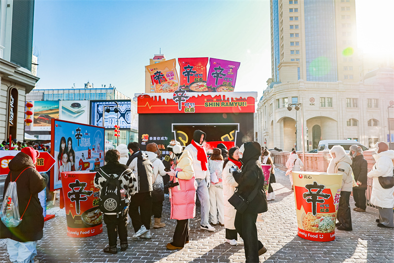 2026年1月,农心辛拉面亮相哈尔滨国际冰雪节,开启「暖SHIN之旅」快闪活动,点燃冰雪奇境!活动以SHIN藏馆、SHIN乐园、SHIN冰雕、SHIN食堂、SHIN乐园及SHIN剧场和SHIN长廊六大主题板块,覆盖哈尔滨六大城市地标,将冰城化为巨大的辛拉面痛城,用一场特殊的辛拉面温暖之旅在冰雪中传递独特温暖,品味“一口辛拉面,我又SHIN了”的暖心暖意。