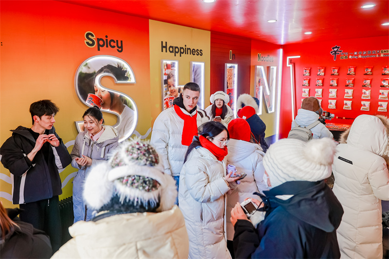 SHIN藏馆作为辛拉面品牌历史展览馆,位于哈尔滨地标建筑中央大街上,于1月初限时开放。除了展示各种辛拉面的产品墙和辛拉面slogan“一口辛拉面,我又SHIN了”的内涵外,现场还原了江边拉面、车站等经典韩剧吃面场景。游客能在此亲身体验农心品牌的发展历程,感受品牌传递的温暖情感内核。