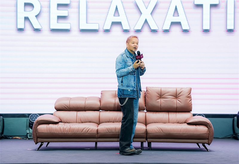设计大师戴昆的登场将发布会推向高潮。在《2026-2027设计趋势及设计理念》分享中,他深度解析未来家居美学,并隆重揭晓亲自为羡慕家居打造的年度新品——“躺赢”沙发。该产品以可调低靠背、灵活头枕扶手与悬浮感底座设计,诠释“不费力的优雅”,堪称“好沙发,大师作”品牌主张的生动体现。