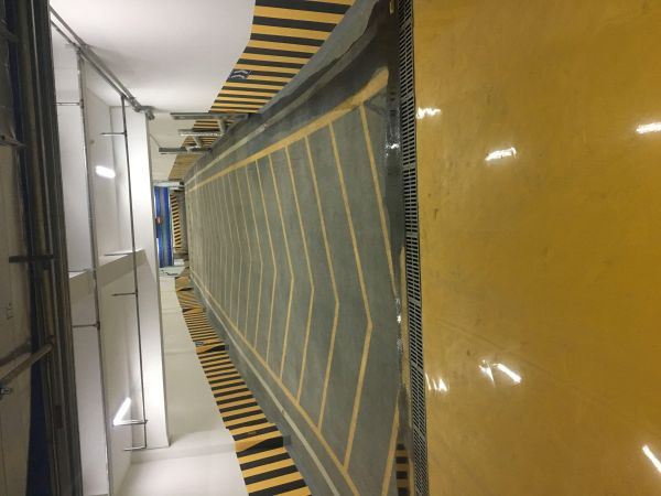 项目背景:深圳名居广场地下停车场坡道原为普通混凝土地面,雨季时车辆打滑现象频发,物业方要求进行防滑升级改造。
