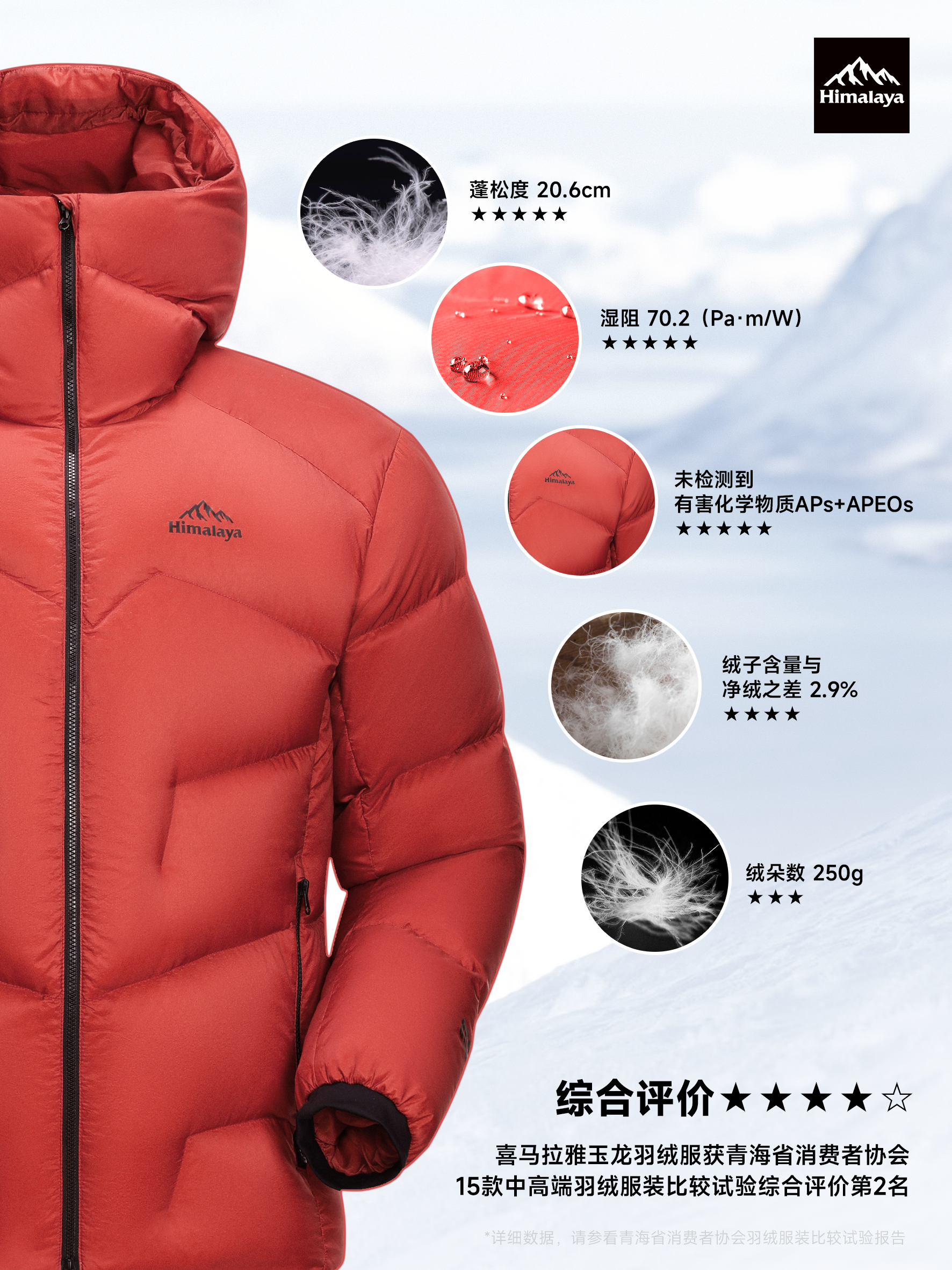 近日,青海省消费者协会公布了15款中高端羽绒服比较试验结果,「喜马拉雅玉龙鹅绒服」凭借卓越品质荣获综合评价第2名,获权威认可。