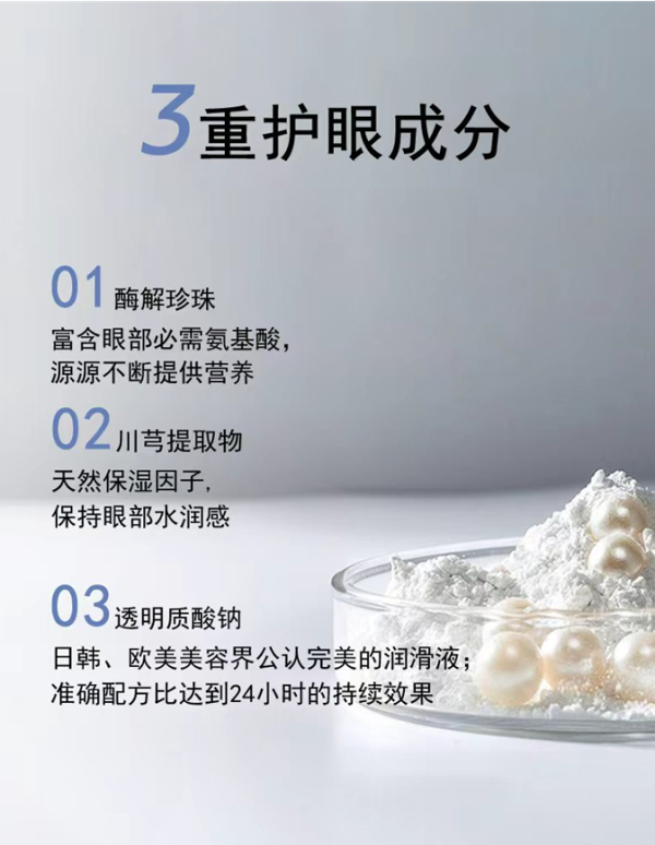 添加积雪草提取物等:注重眼周肌肤的保湿、舒缓,辅助改善干纹和暗沉,适合同时有护肤需求的人群。