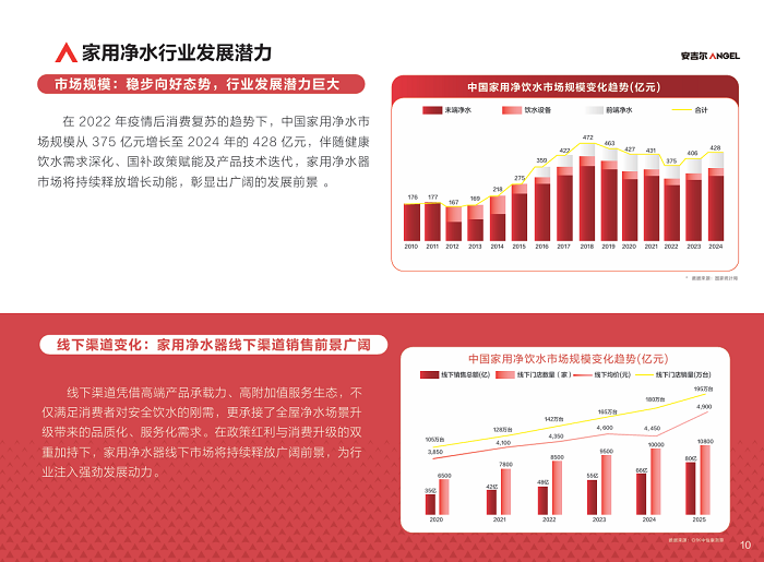 对比欧美国家60%以上的家庭净水普及率(数据来源:GfK中怡康数据测算)中国市场潜力尚未充分释放。行业机遇伴随挑战:产品同质化、服务质量参差等问题仍存,终端用户对专业品牌的需求日益迫切。