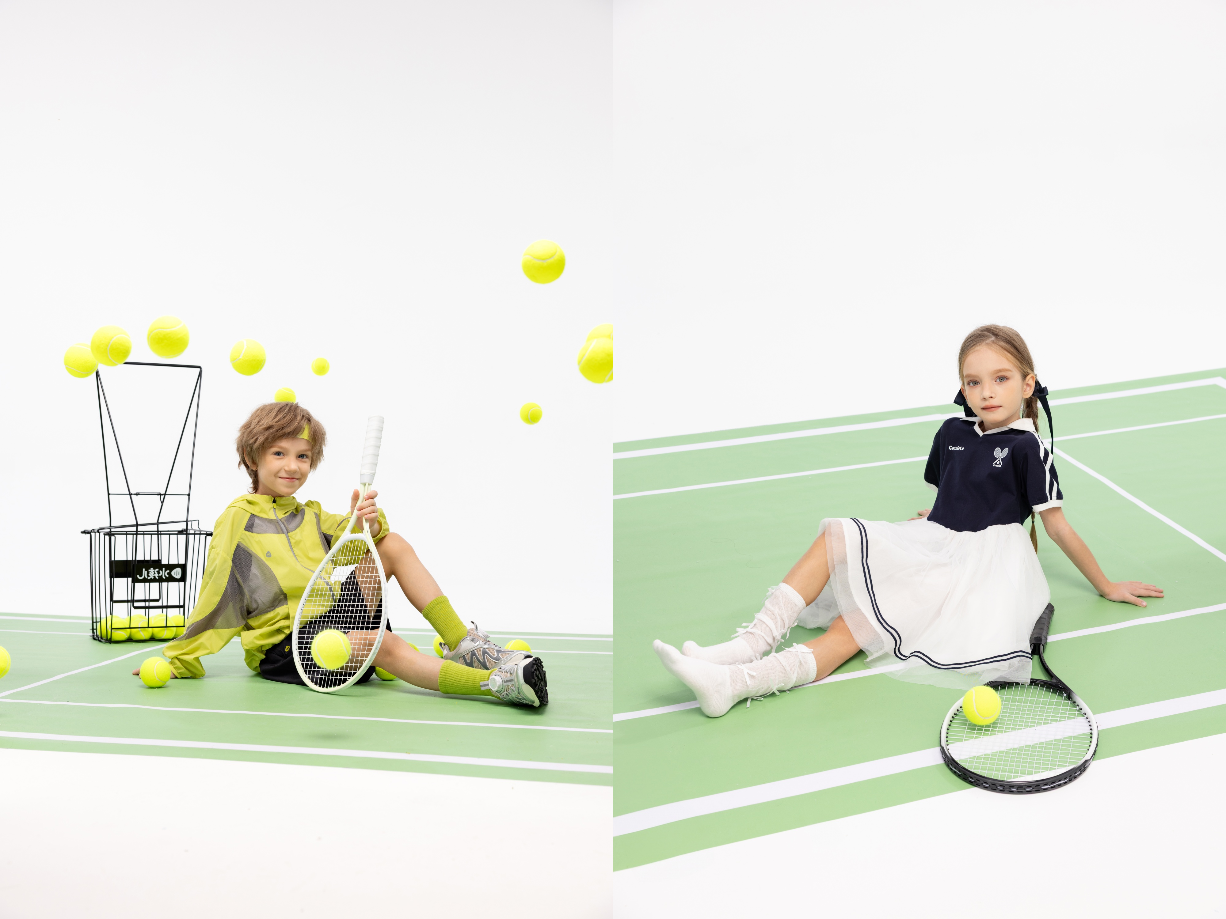 系列通过“户外休闲”与“综合训练”双线叙事,将景迈山的自然意象与运动中的动态美学相融合,通过运用虚焦花卉、渐变与扎染晕染等视觉手法,构建出朦胧而富有层次的设计语言。色彩选用芭蕾舞粉、奇域粉、卡其灰、龙吟绿、暮棠橙等,呼应儿童成长中无限的生命力。