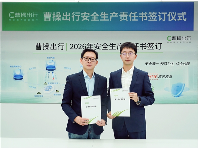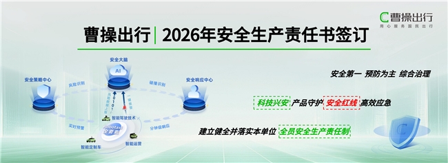 为持续夯实企业发展基石,将安全生产责任全面、深入地贯彻至每一个业务环节,近日曹操出行举行了2026年度安全生产责任书签订仪式。曹操出行CEO龚昕、总裁柳森及安全生产委员会其他成员出席仪式,现场签署了《安全生产责任书》,标志着公司新一年的安全生产工作在更高标准、更严要求下全面启动。