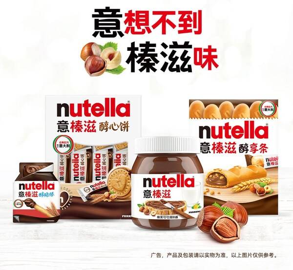 在中国市场,意榛滋带来一款涂抹酱和三款饼干类产品,包括意榛滋榛果可可酱(Nutella Jar),意榛滋醇心饼(Nutella Biscuits),意榛滋醇享条(Nutella B-ready),以及意榛滋醇脆棒(Nutella & Go!),为国内消费者的多种时刻增添美味点缀。