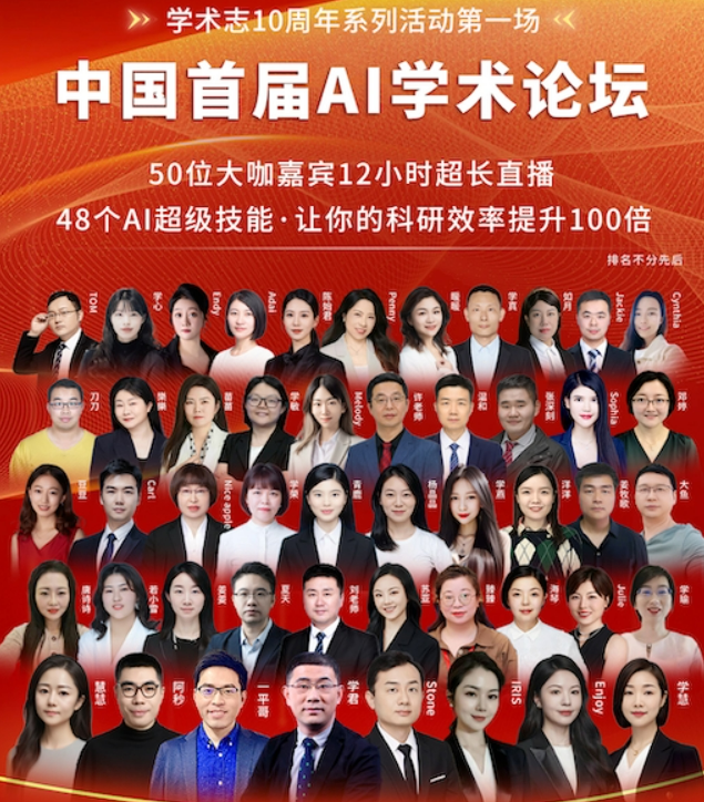 早在 2023 年,当多数机构仍在观望 AI 技术时,学术志已在学术界率先推出 AI 大模型赋能科研与写作的系统课程;2024年主办 “中国首届 AI 学术论坛”,吸引超 10 万人次线上参与,推动 AI 学术应用进入公共讨论视野。
