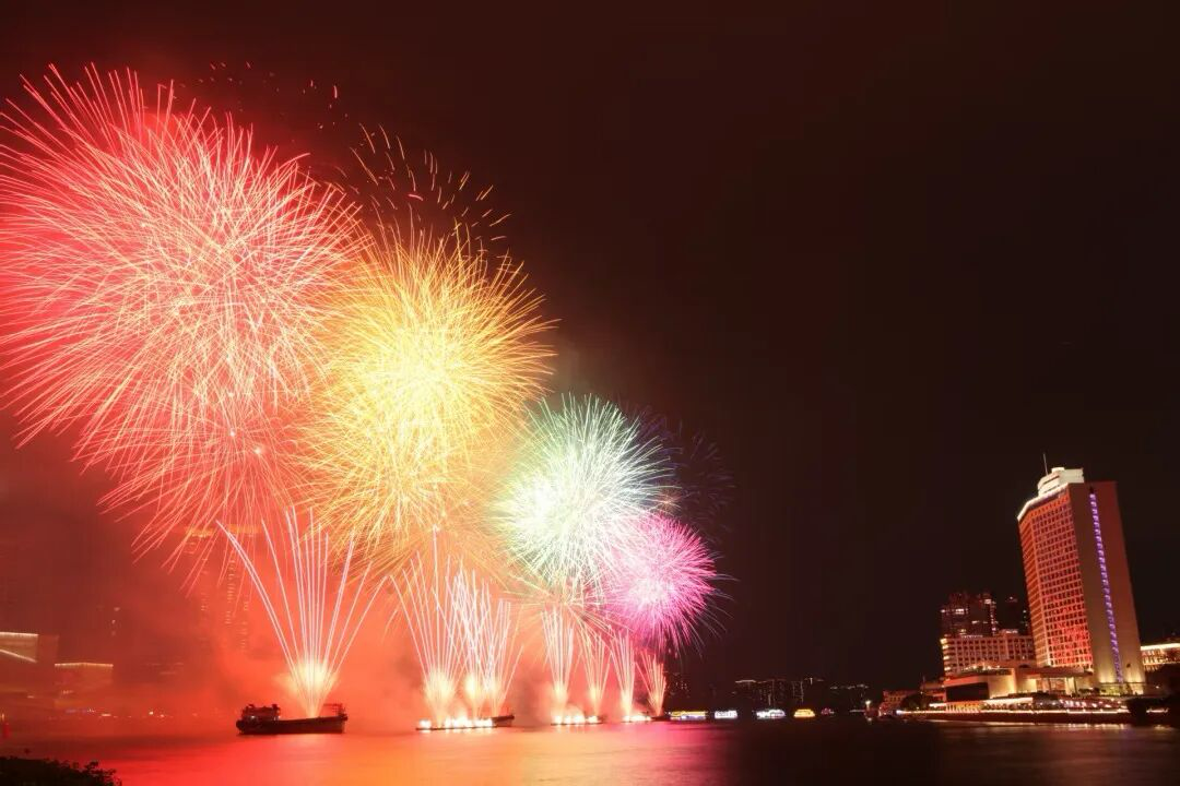 今年,烟花汇演继续采用碳中和环保焰火产品,并新增75种新品类烟花,色彩搭配更加丰富多元,将花城夜空点缀得如梦似幻。高、中、低空烟花总数量超过15万发。其中,高空烟花较去年增加近2000发,给观众带来极致的视觉冲击。