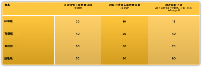 1)大幅提高跟进数量上限,企业可根据业务增长自由构建、管理更多跟进数量,无需担心数量限制;