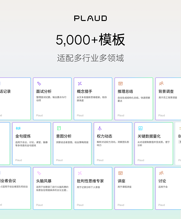 Plaud更新上线超5,000个总结模板,进一步为用户提供专业、高效的信息总结和决策支撑能力。