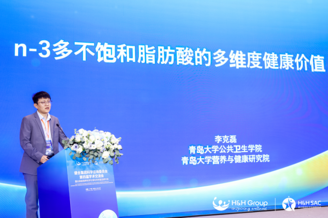青岛大学营养与健康研究院、公共卫生学院特聘教授李克磊综述了“n-3多不饱和脂肪酸的多维度健康价值”,他指出其在心血管、认知、肝脏、肌肉等多器官系统的保护作用,为n-3多不饱和脂肪酸的科研转化应用提供了科学指引。
