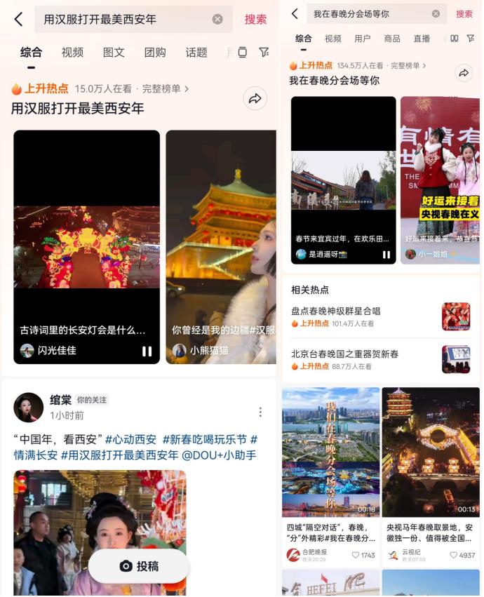 这一连串热搜榜单的背后,不仅反映了游客对西安年味的高度认可,更印证了抖音生活服务“心动西安”这一IP在节日语境下的强大号召力。这一连串热搜榜单的背后,不仅反映了游客对西安年味的高度认可,更印证了每一个游客用真实的镜头和点赞,共同推高了这座城市的热度,让“流量”转化为了真切的城市“声量”。