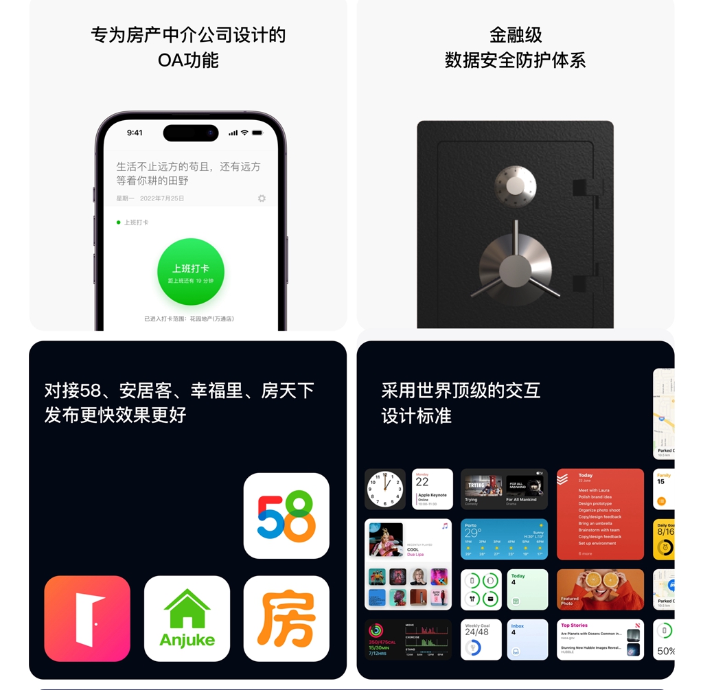5、金融级安全:隐号通话、权限隔离、操作留痕、数据加密,从根源防止房源、客户流失。