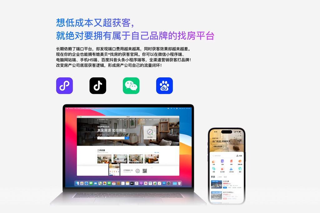 微信房产小程序+抖音房产小程序,挂载房源,客户在线找房、预约、留资;