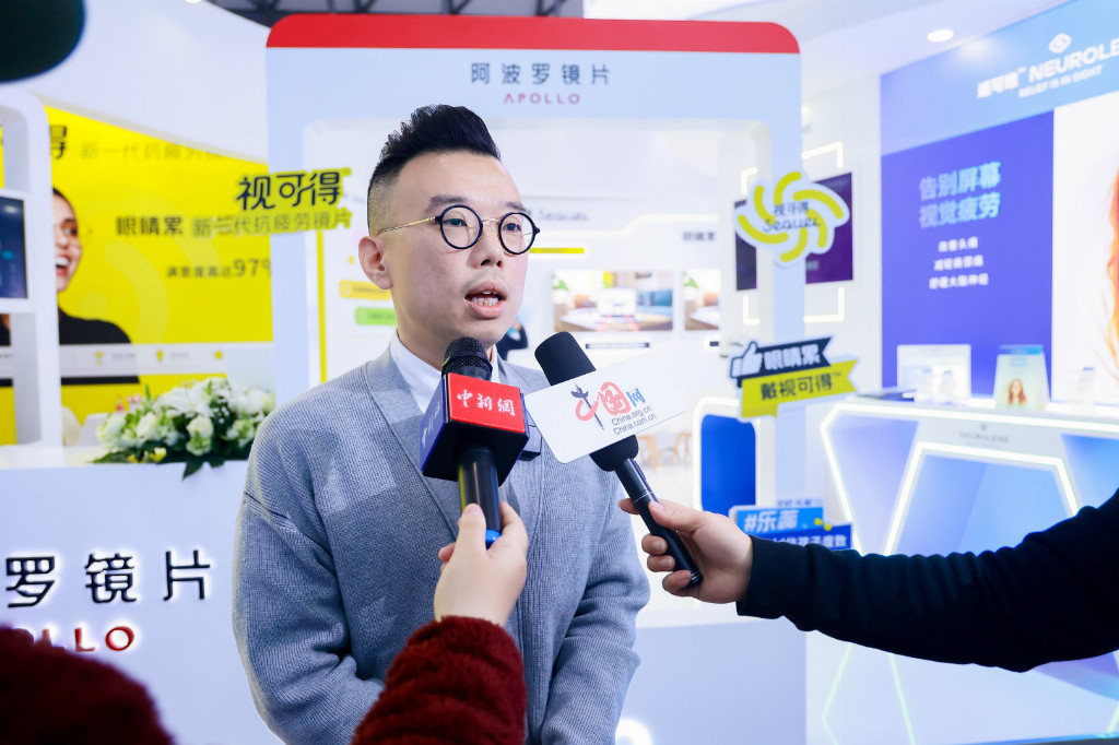 展会现场,阿波罗镜片总经理施信诺接受了中华网、中新网、中国眼镜科技杂志等权威媒体的专访,深入解读了品牌本次参展的核心亮点、产品技术优势及行业布局。针对本次参展的核心产品,施信诺表示:“阿波罗本次展示了覆盖全龄段的视觉健康方案,包括近视管理效果达68%的乐蕊®Pro;以及针对视疲劳的视可得™,解决数字视觉综合征(DVS)的适可维™Neurolens®,还有配套的N3沉浸式测量设备。此外,展区还陈列了精密医疗功能镜片,全方位满足不同人群的视觉健康需求。”