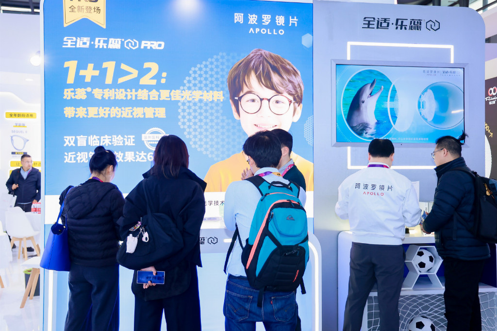 除三大核心新品外,阿波罗镜片展出的精密医疗镜片也备受关注。施信诺表示,该系列产品旨在关注有医疗视觉健康需求的人群,其中远视眼轴生长辅助镜片通过精准、定量匀光膜,减少光通量,促进眼轴生长;双眼等像镜片则可改善双眼屈光参差带来的视觉问题,“阿波罗镜片致力于为每一位有视觉健康需求的消费者提供专业服务”。