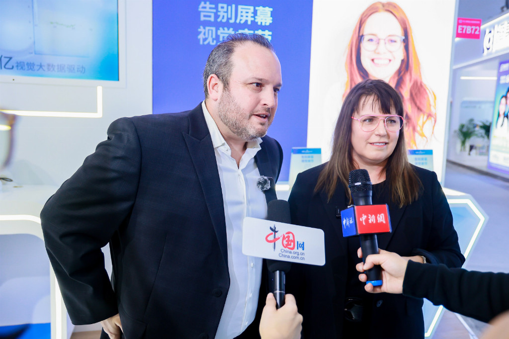 本次展会期间,美国著名视光专家、华盛顿州视光协会会员Dr. Evie Lawson,以及Newton首席运营官同步接受媒体访问,从专业角度解读适可维™Neurolens®的技术优势与临床价值。她表示,数字化用眼易导致调节与聚散功能失调、眼外肌紧绷,适可维™凭借专利渐变棱镜技术,可矫正双眼协同失调,缓解头痛等不适。改善率高达93%,她强调该数据源于临床跟踪,能有效缓解眼痛,以及过度用眼带来的头痛、肩颈僵硬等问题。
