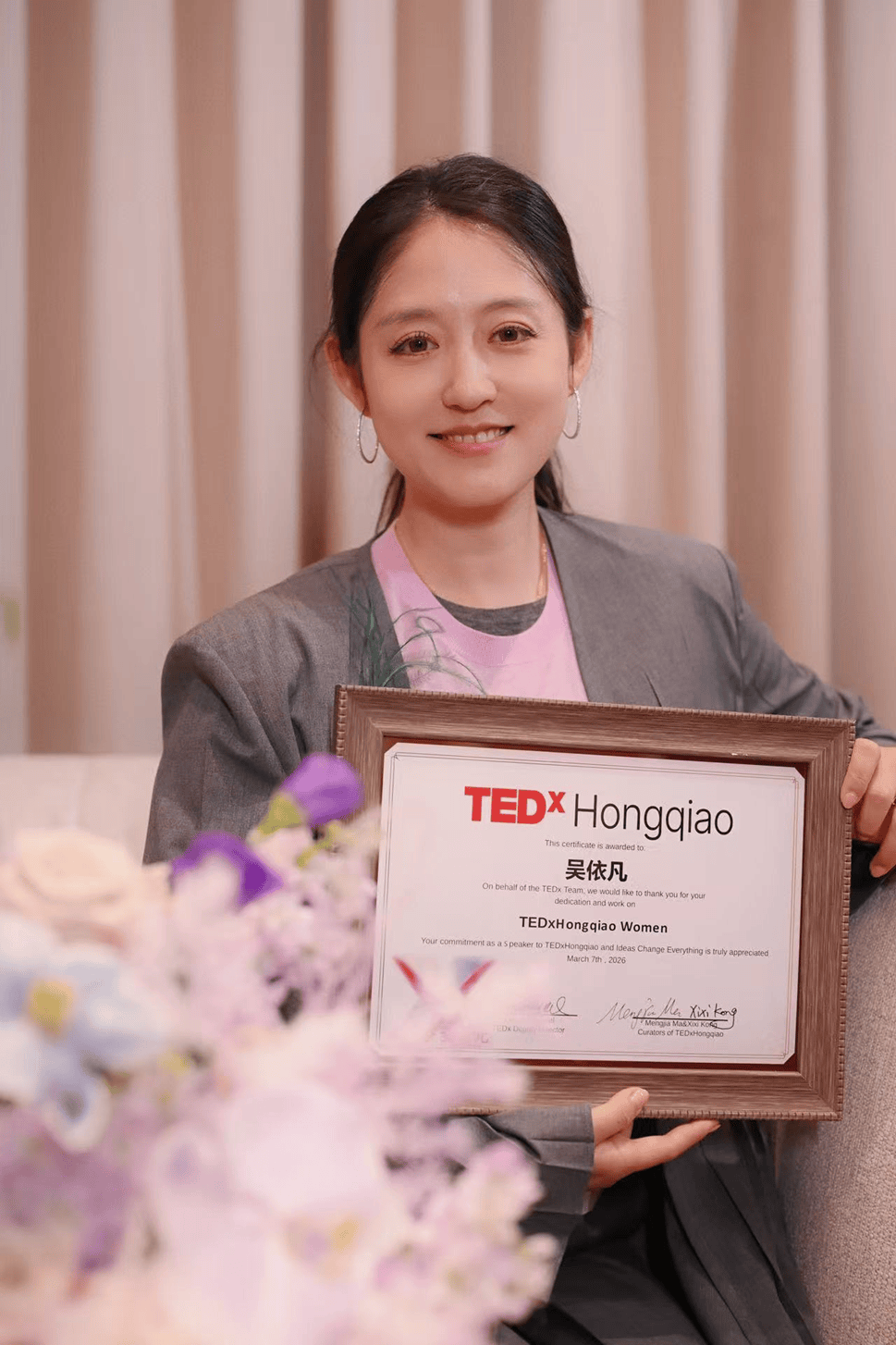 “女子本弱,为母则刚。孩子不是我们的软肋,是温柔的铠甲。”吴依凡在演讲中说,“所有女性成为母亲后,都会绽放出另一种特质——坚韧、沉稳、思虑周全。”