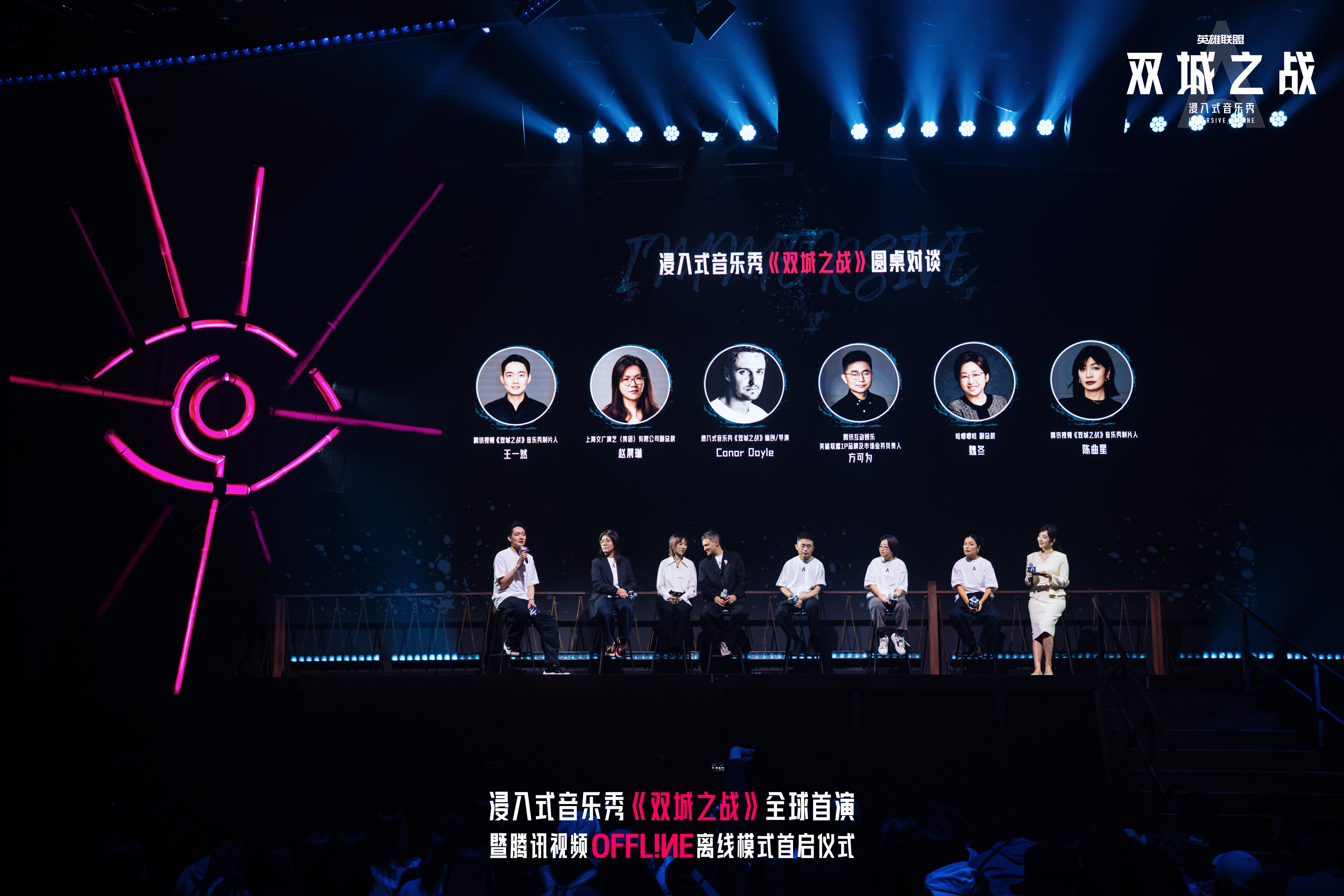 《双城之战》这一IP所蕴含的流行文化感召力,吸引了行业各方的高度关注,而浸入式音乐秀的成功落地,离不开多方伙伴的携手发力。启幕仪式上的圆桌对谈,由腾讯视频《双城之战》音乐秀制片人王一然担任主持人,与大家共同分享了这1000多天的创作历程。