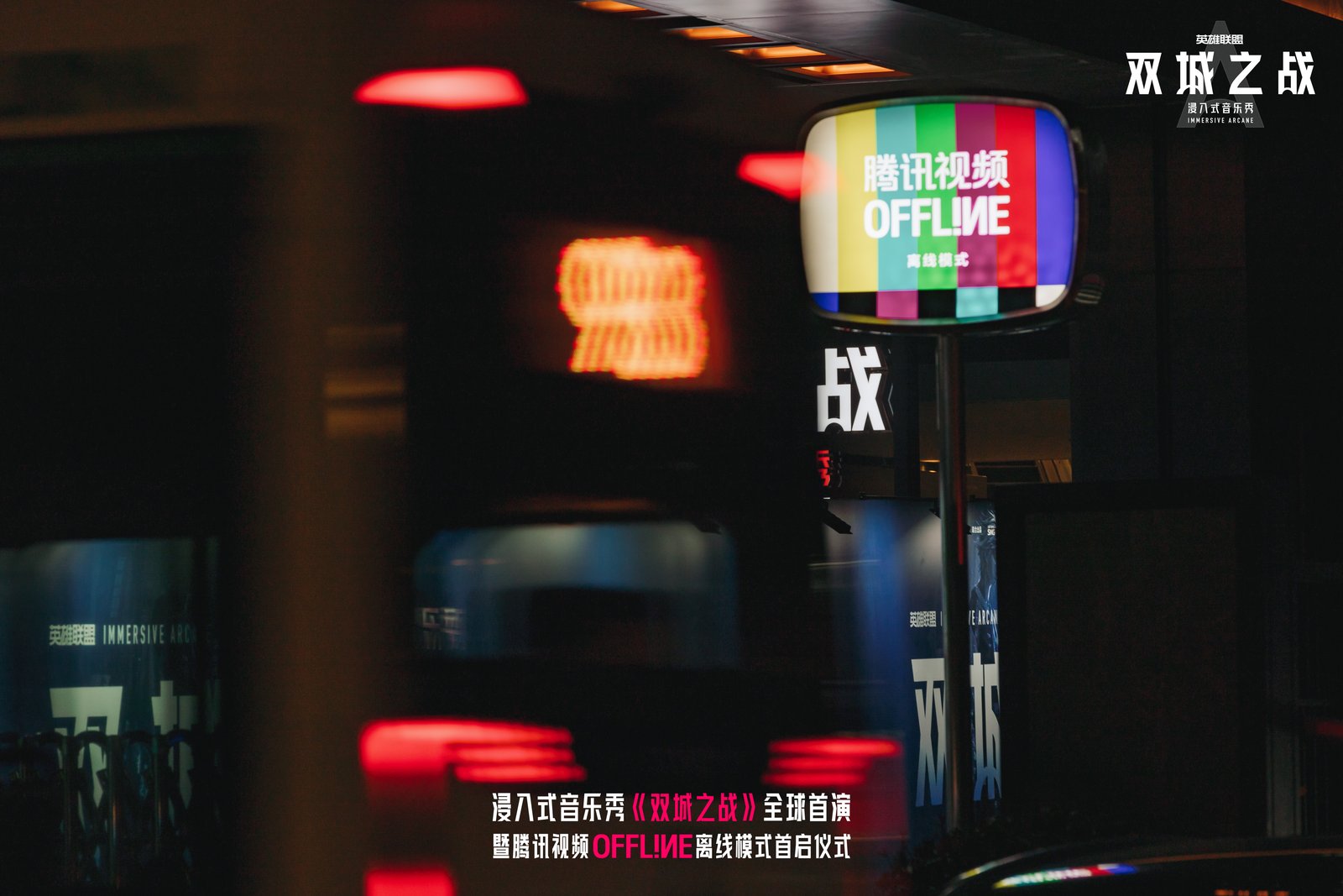 这是浸入式音乐秀《双城之战》全球首演暨腾讯视频Offline离线模式首启仪式的开场表演。由腾讯视频、腾讯游戏出品,上海文广演艺集团、拳头游戏、哇唧唧哇、东方明珠联合出品,英国浸入式戏剧先锋Punchdrunk联合制作的浸入式音乐秀《双城之战》,作为改编自同名现象级动画的作品,自官宣以来便备受行业与用户瞩目,过去两个多月的内测期间,已有5000余名观众奔赴这场线下之约。